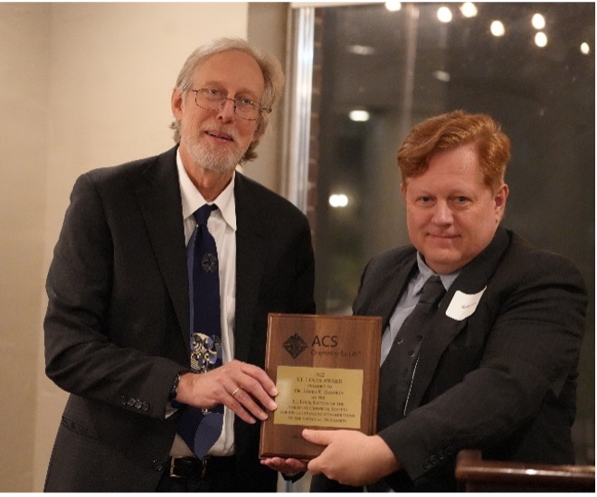 On October 14 of this year, a symposium and banquet were held in honor of Professor James K. Bashkin, this year’s 52nd annual St. Louis Section ACS Awardee, for his outstanding contributions to the chemistry profession and demonstrated potential to further the advancement of the chemical profession. The symposium “Nucleic Acid Function, Probes and Therapeutics,” organized by Dr. Bashkin with the help of Professor Keith Stine, Chair of the Department of Chemistry and Biochemistry, was attended by over 50 people in Benton Hall 103 at the University of Missouri - Saint Louis and about 20 other people by Zoom. The attendees were welcomed by Dr. Tabbetha Bohac, Chair-Elect of the St. Louis Section of the ACS, who spoke of the great contributions of the local section to the local community.