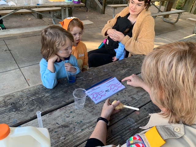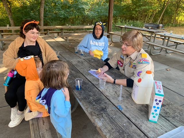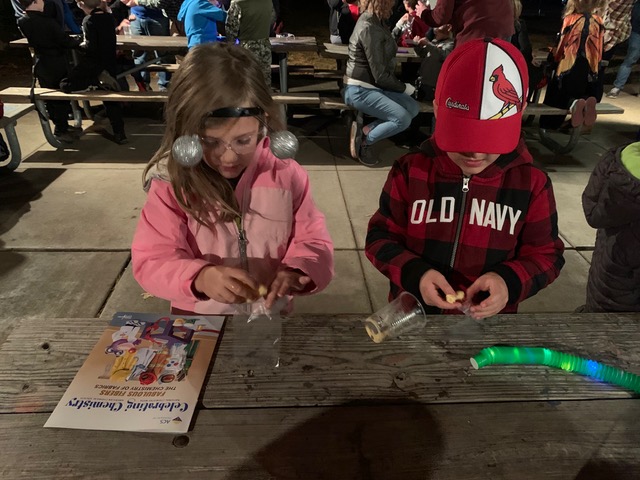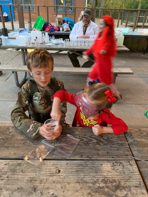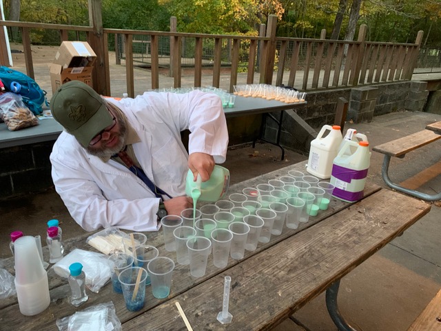 On Saturday, October 15th, almost 500 scouts and their leaders made slime as the grand finale activity of their participation in the Fright Fest experience at Beaumont Scout Reservation. The overall event was organized by the Greater St Loius Area Council, and Lisa Balbes organized the St Louis Section’s participation. Scouts worked in pairs, learned about non-newtonian fluids, polymer chemistry, safe storage of chemicals and PPE, and then made their own slime. Scouts took their own slime home. NCW materials were passed out to many of the parents and leaders. The event ran from 3pm to 9pm, with a new group of scouts approximtely every 15 minutes throughout the evening.