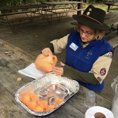 On Sunday, October 14th at the Cub World Pavillion on the Beaumont Scout Reservation, approximately 700 Cub Scouts entered an outdoor science lab weary from their haunted hike and created pumpkin guts and snot (aka orange or green slime). They learned about non-Newtonian fluids, and polymer chemistry, then worked in pairs to make their own slime, which they were able to take home. A total of 14 volunteers from St. Louis University, Washington University, ACS, and Troop 371 assisted with the event, which ran from 2pm to 9pm. More than 75 service hours were provided. At least one scout cried when his mother made him stop playing with the slime and put it in the bag, and at least one adult commented that they now understood polymer science in a way they never had before.
