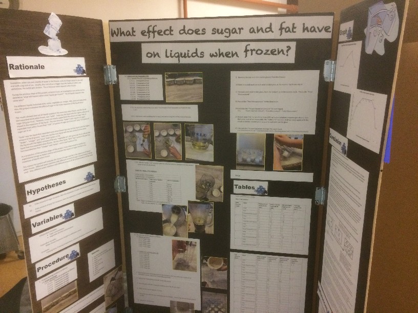 Second Place: Denzel Montalvo, Grade 6, Jefferson Intermediate, MO: What effect does sugar and fat have on liquids when frozen